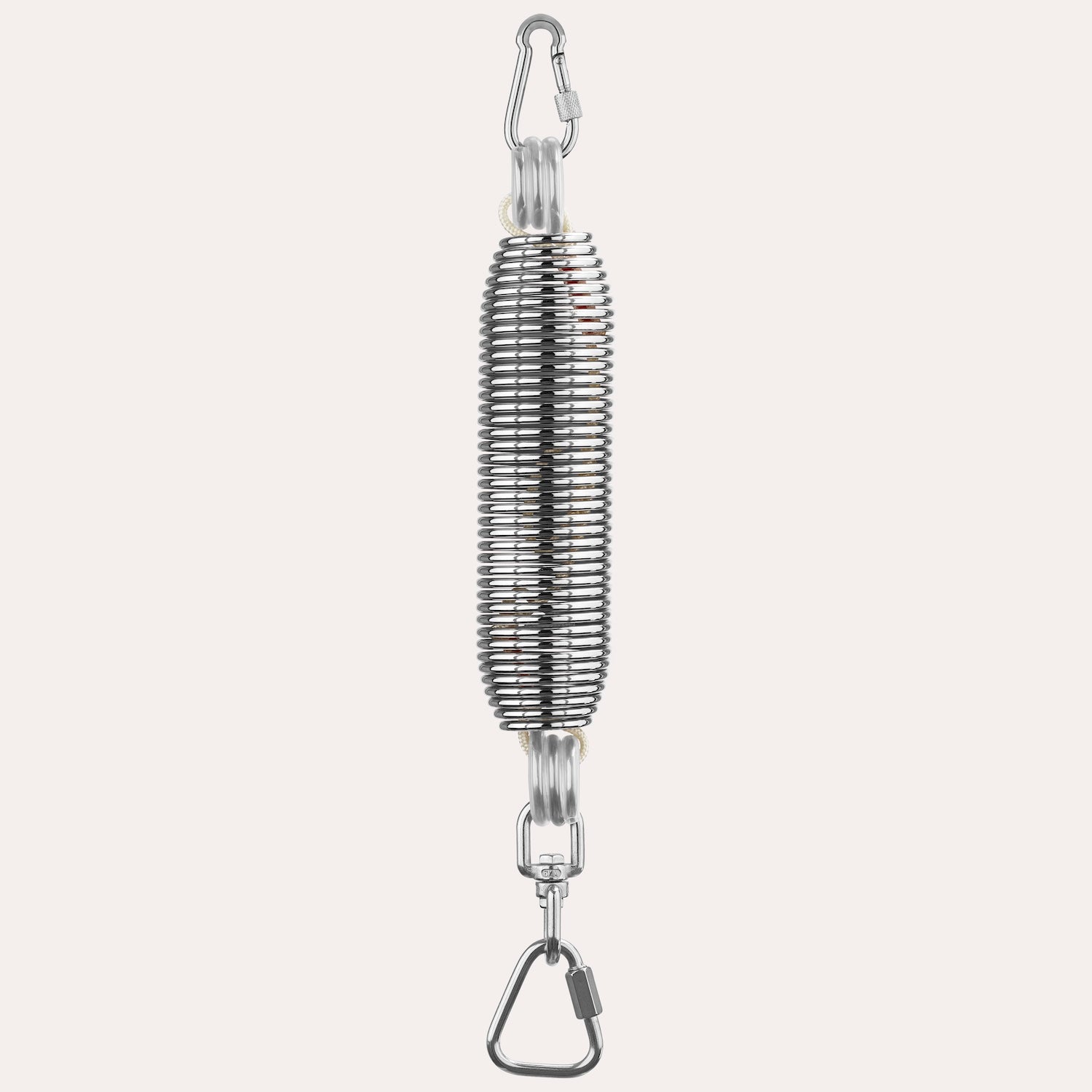Unser innovatives Federdesign bietet nicht nur eine stabile und zuverlässige Funktion, sondern erspart dir auch das lästige Wechseln verschiedener Federn. Für zusätzliche Sicherheit sorgt ein robustes Sicherheitsseil aus Klettergurtband, das die Federwiege sicher hält.