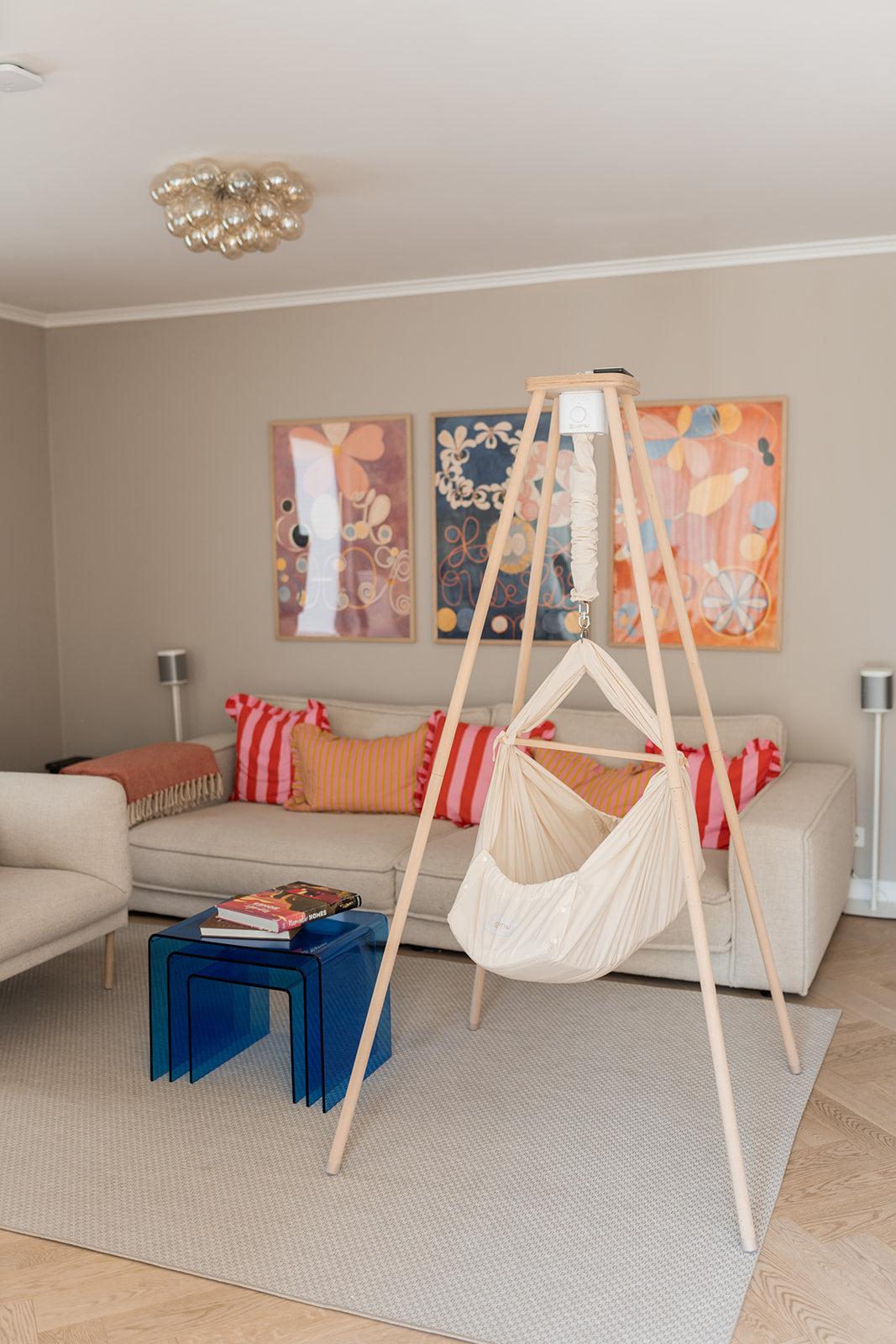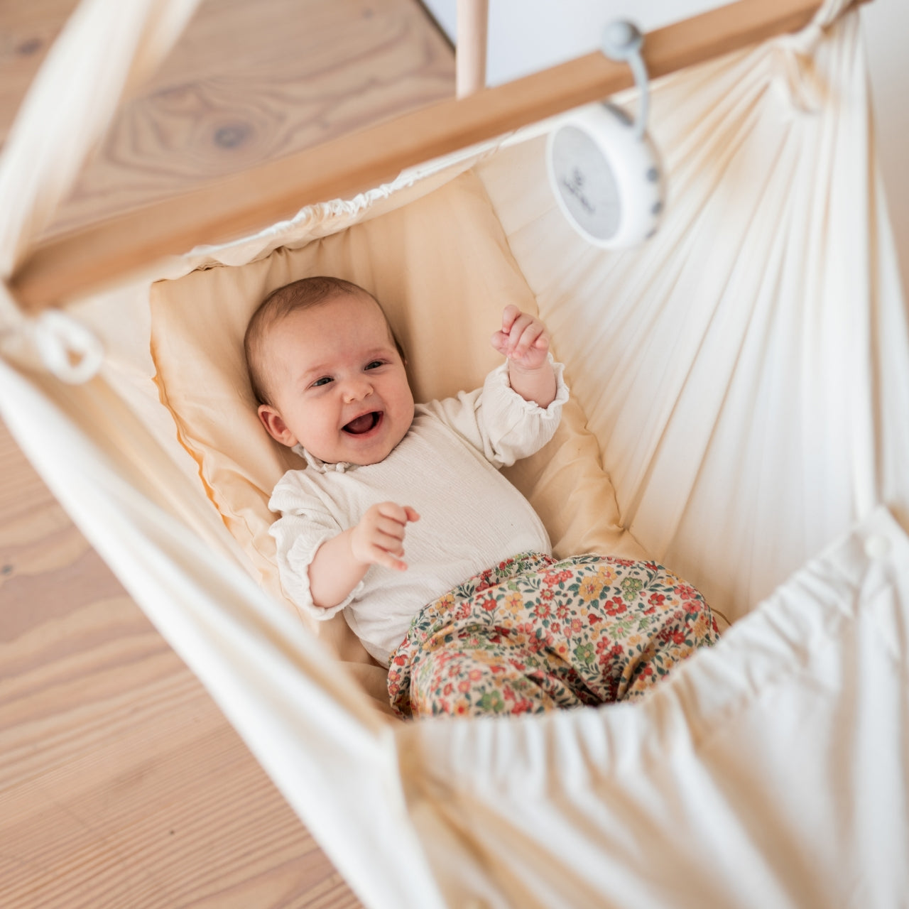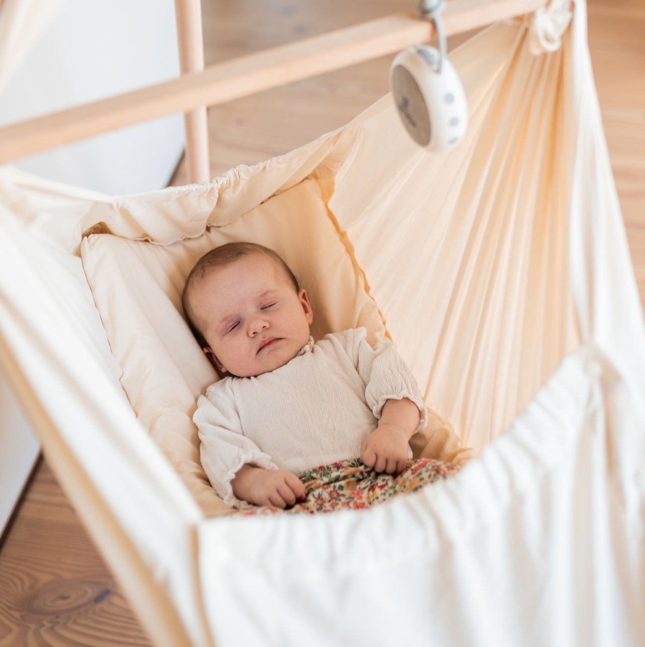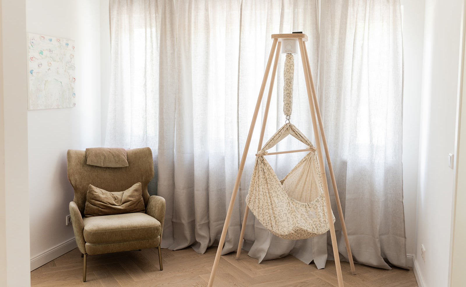 Die Federwiege erinnert an die Umgebung im Mutterleib