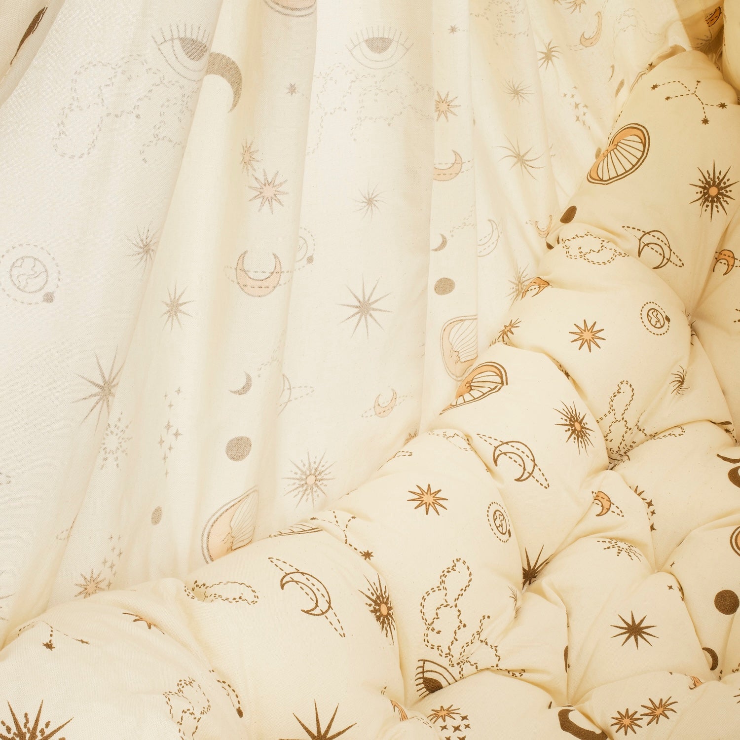 Der Wiegenstoff besteht aus hochwertiger Baumwolle (ÖKO-Tex 100, Klasse I). Er ist sanft zur Haut, atmungsaktiv und robust. Die mitgelieferte Matratze unterstützt ergonomisch – weich genug, um sich anzuschmiegen, stabil genug, um nicht einzusinken. Das Ergebnis ist ein kleiner, geschützter Raum, der Geborgenheit vermittelt und das Entspannen erleichtert.