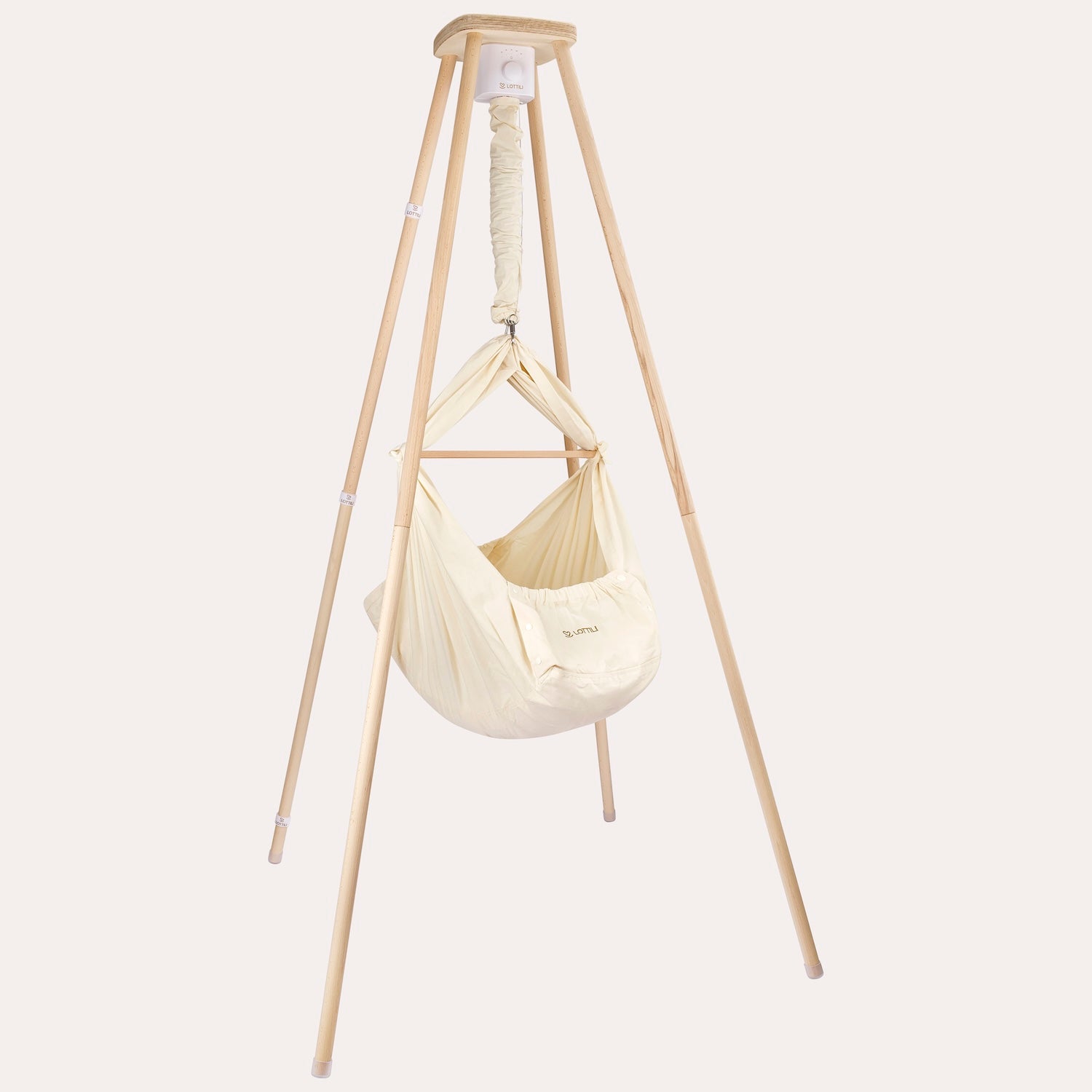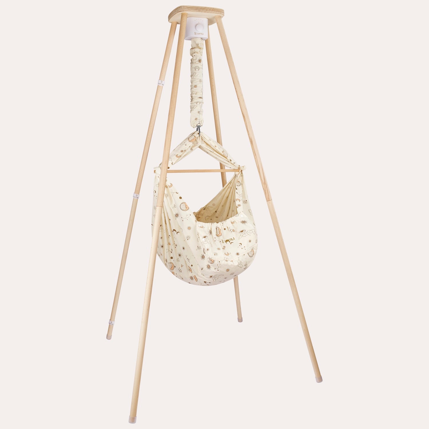 Gefertigt aus europäischem Buchenholz fügt sich das Gestell unaufdringlich in euer Zuhause ein, steht sicher und braucht wenig Fläche. Es lässt sich unkompliziert versetzen, wenn die Wiege vom Wohnzimmer mit in die Küche oder ins Schlafzimmer wandert.
